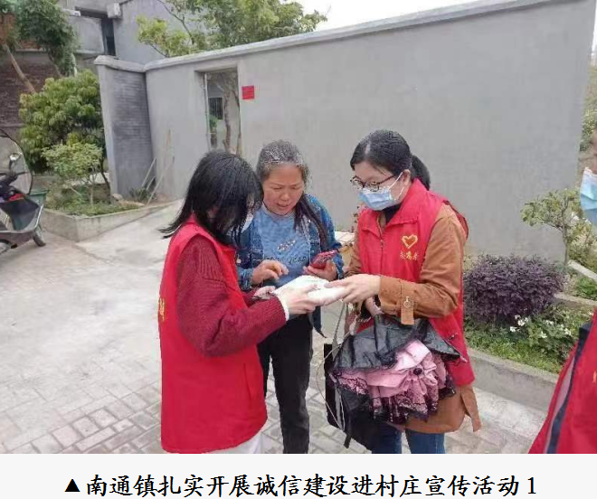 开展社区宣传,普及民众知晓度。南通镇依托17个行政村开展了“诚信建设进村庄”活动。活动中,工作人员热情地向过路群众发放诚信建设、商务诚信建设等宣传单。积极地向村民讲解什么是诚信以及诚信在日常生活、工作中的重要性,倡导大家在生活中积极践行诚信。从邻里之间诚信相处、诚信经营等方面入手,向居民阐述了诚信在建设和谐社会中的积极作用,助力提升群众的诚信意识和信用水平,全力营造诚实守信的良好社会风尚。