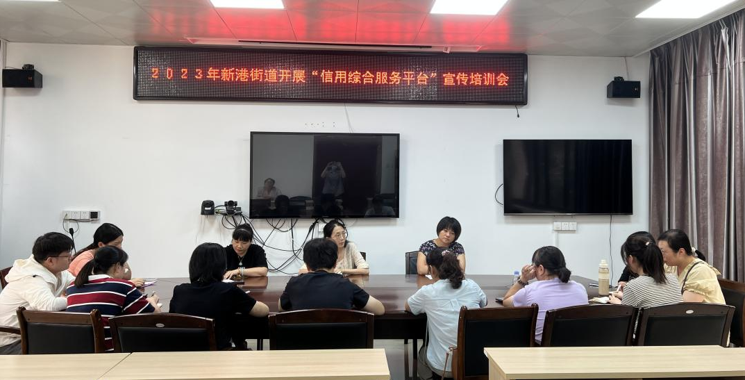 2023年9月14日,为缓解中小企业融资难、融资贵问题,新港街道组织开展“信用综合服务平台”宣传培训会,街道、社区工作人员参加会议。