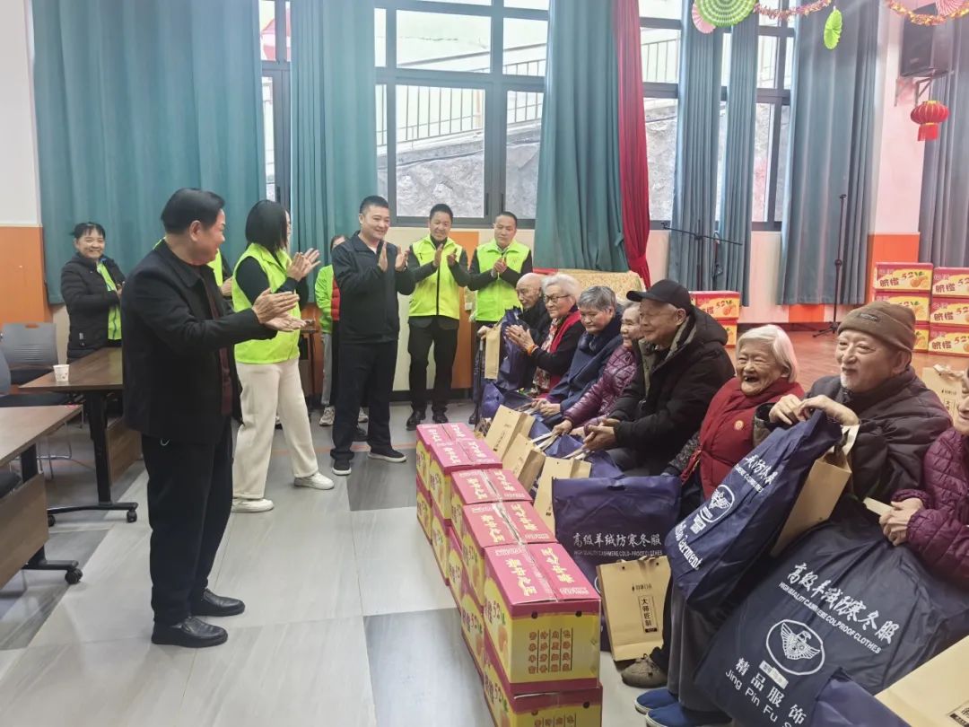 活动上,向老人送上了30箱橙子、20件保暖大衣、20盒茶叶和新春的祝福。老人们也纷纷表达了对两家单位的关心和问候的感激之情。