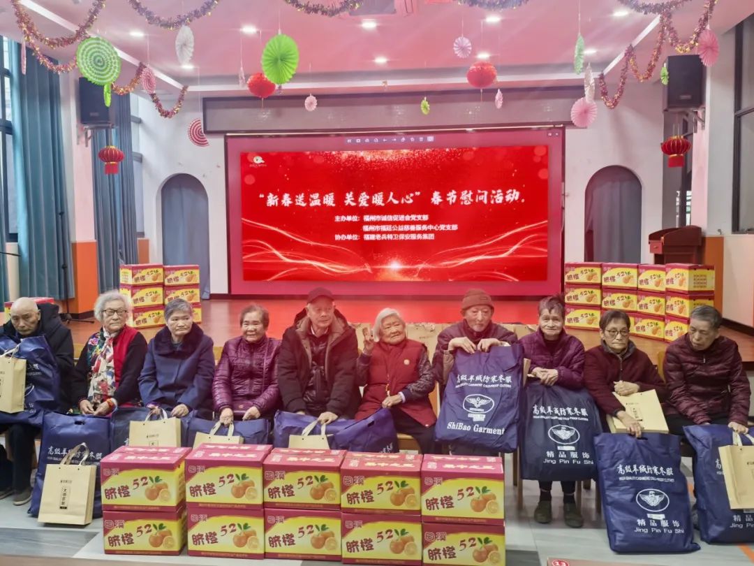 春节将至,为了让老年公寓的老人们度过一个愉快、祥和的春节。1月20日下午,福州市诚信促进会党支部联合市福延公益慈善服务中心党支部赴我会副会长单位、福州西园老年公寓开展新春送温暖 关爱暖人心——“诚信进养老”新春慰问服务活动。市诚信促进会党支部书记陈书碧、组织委员王榕,福建老兵特卫保安服务集团董事长乔永涛,福延公益创始人、名誉理事长李靖,福延公益党支部书记林荔莉,福州西园老年公寓院长余光等参加了慰问活动。