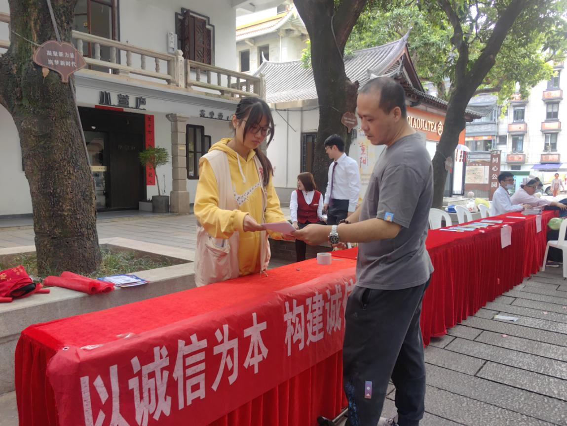 活动现场,社区工作人员与志愿者设立诚信宣传摊位,开展多元化宣传。志愿者向过往居民发放诚信倡议书,以经典故事为引,巧妙融入社区内诚信商户、守信居民的真实事迹,用通俗易懂的语言解读诚信在邻里互助、消费维权中的重要价值。社区工作人员与金融从业者组成诚信咨询团,聚焦居民高频关注的个人征信维护难题、老年群体金融防诈陷阱等热点问题,开展一对一解答,深入浅出地为居民普及征信报告查询流程、信用修复途径等实用知识,让居民们对诚信金融有了更为清晰、全面的认识。