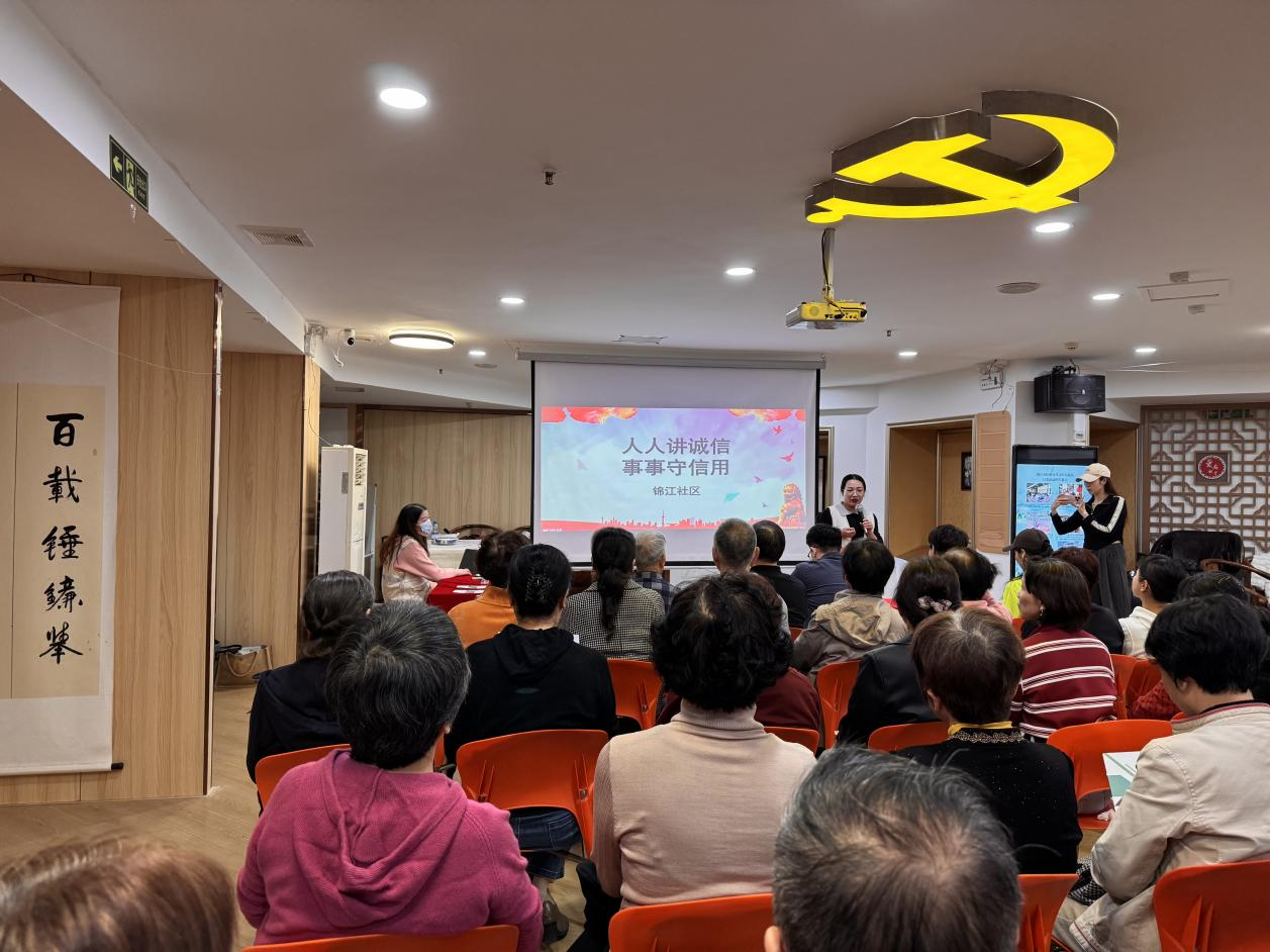 为大力弘扬诚信文化,培育社区居民诚信意识,引导居民树立“人人讲诚信、事事守信用”的理念,12月2日,锦江社区联合民生银行融侨支行开展诚信主题宣传讲座。