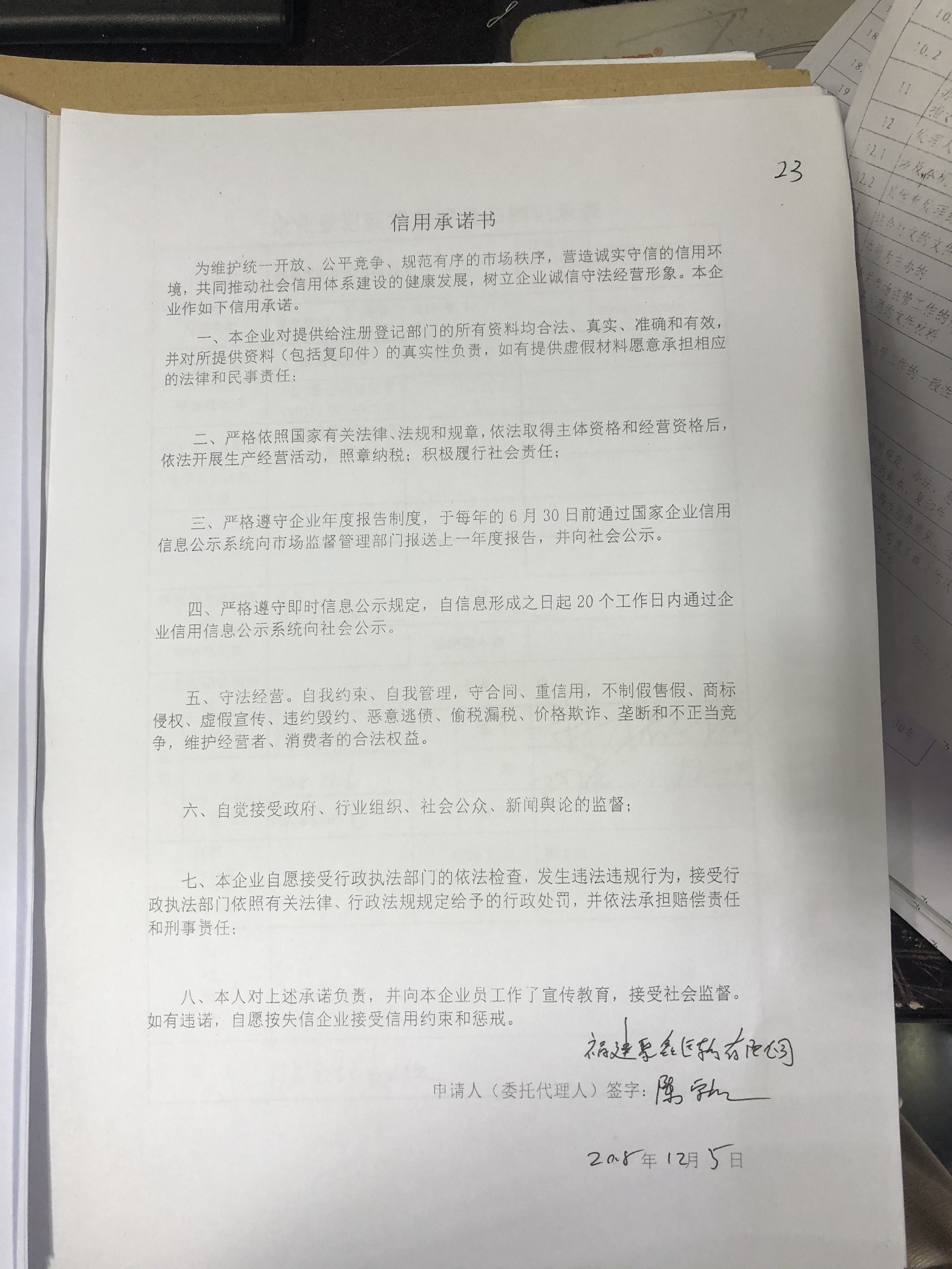 仓山区:福建聚鑫运输有限公司信用承诺书