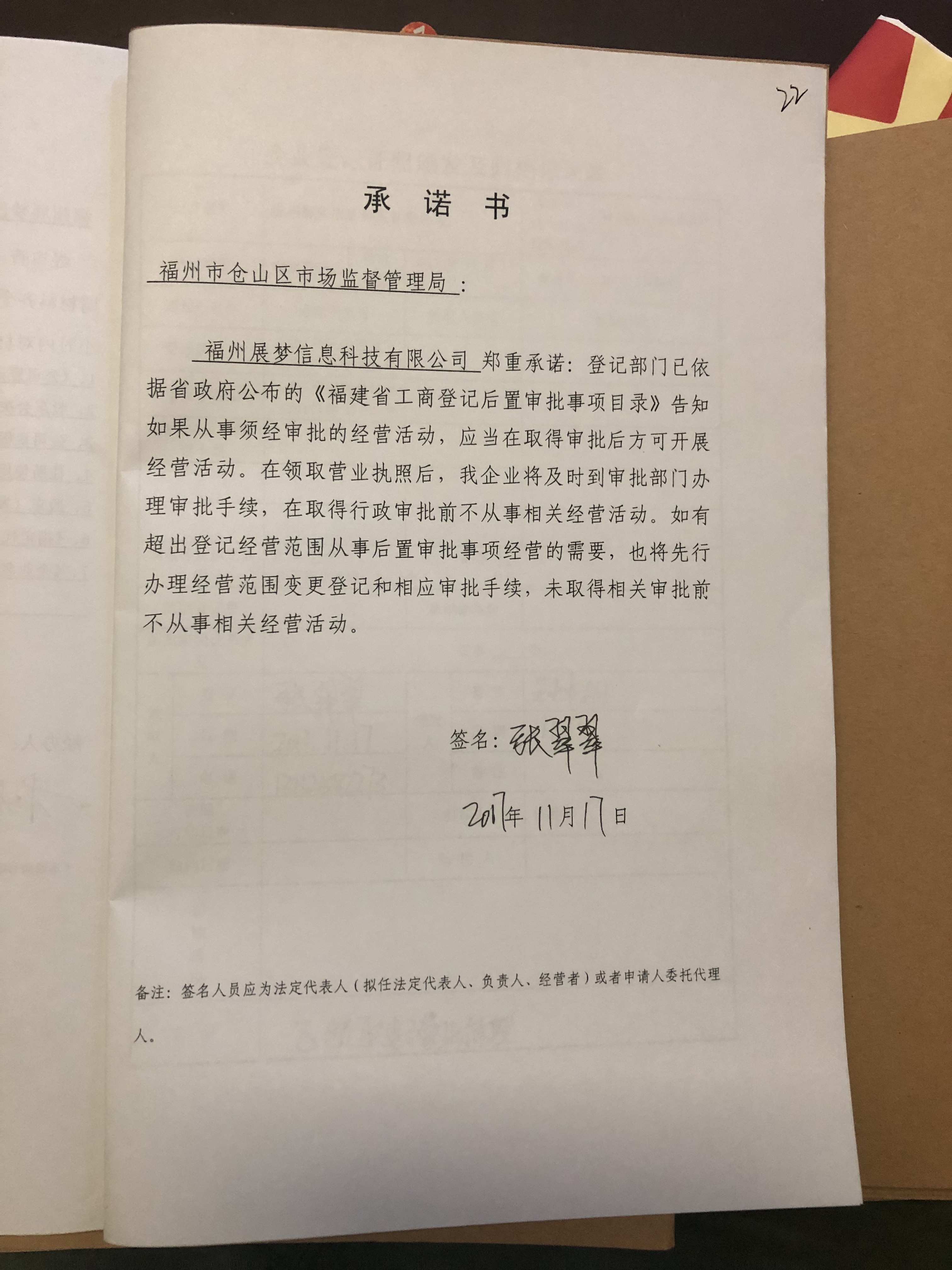 仓山区:福州展梦信息科技有限公司信用承诺书
