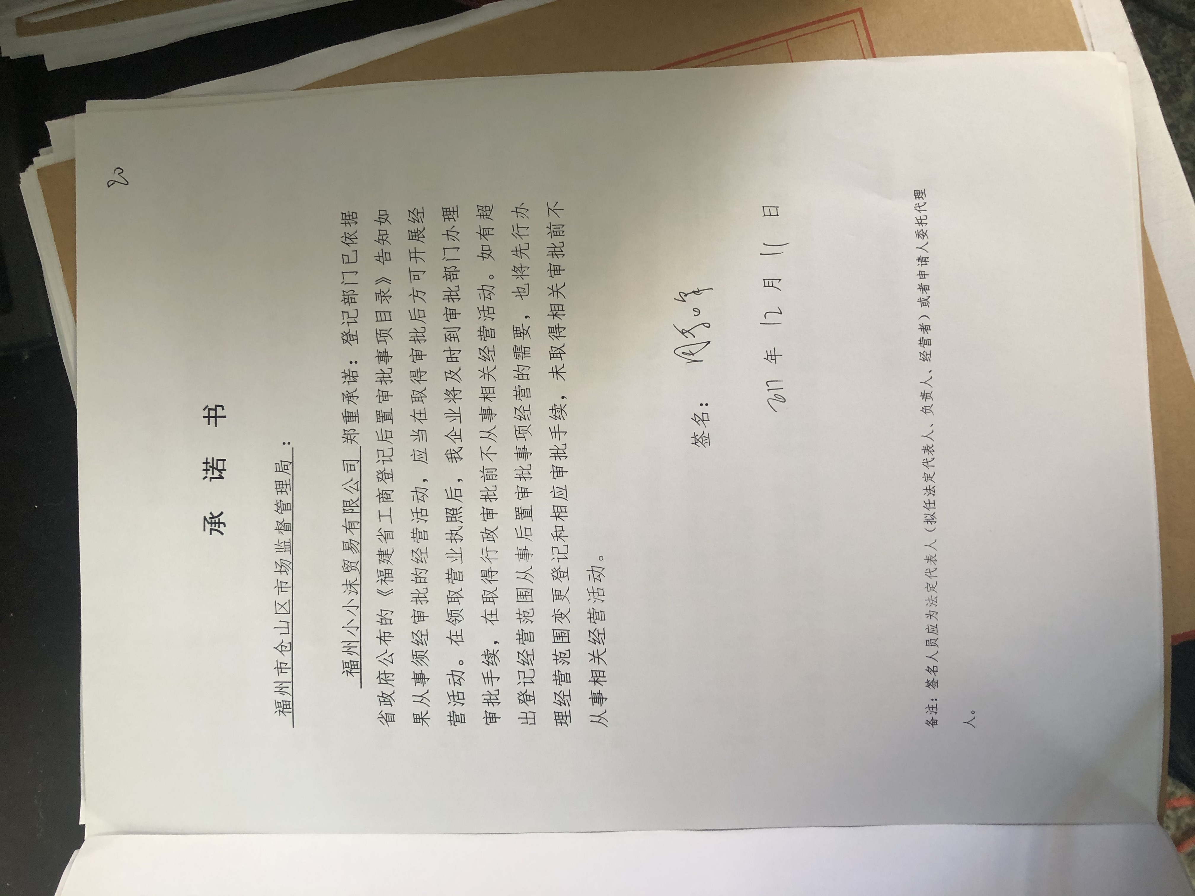 仓山区:福州小小沐贸易有限公司信用承诺书1