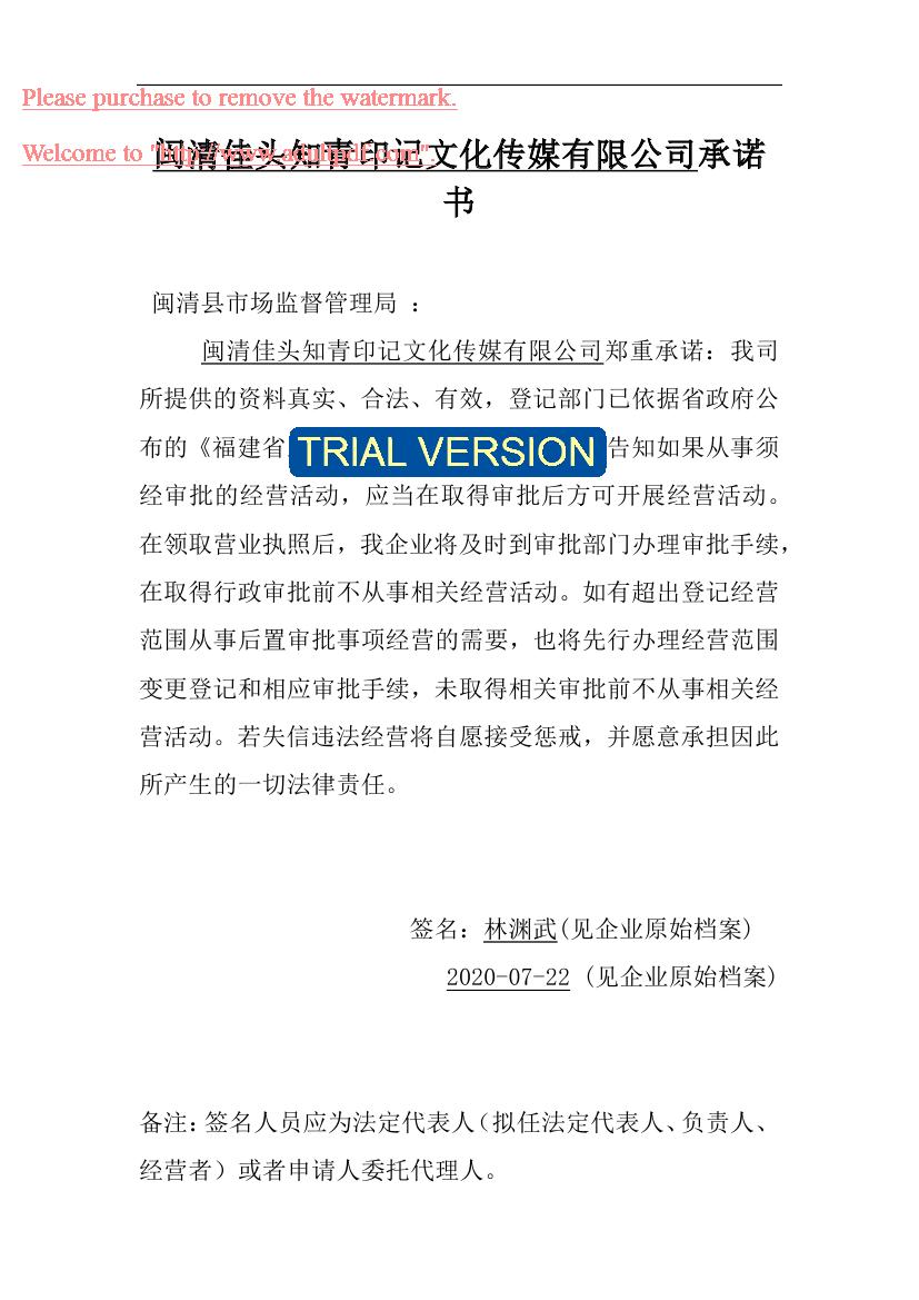 闽清佳头知青印记文化传媒有限公司签署《信用承诺书》